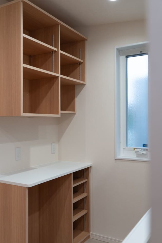 壁にはオリジナルの棚を造作し、「見せる収納」も楽しめます。