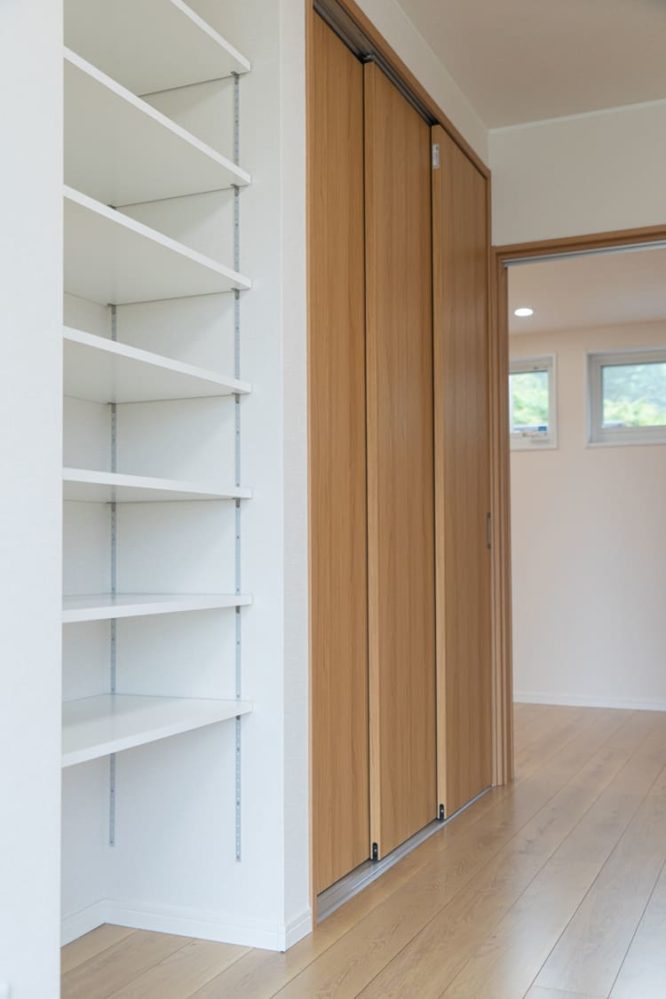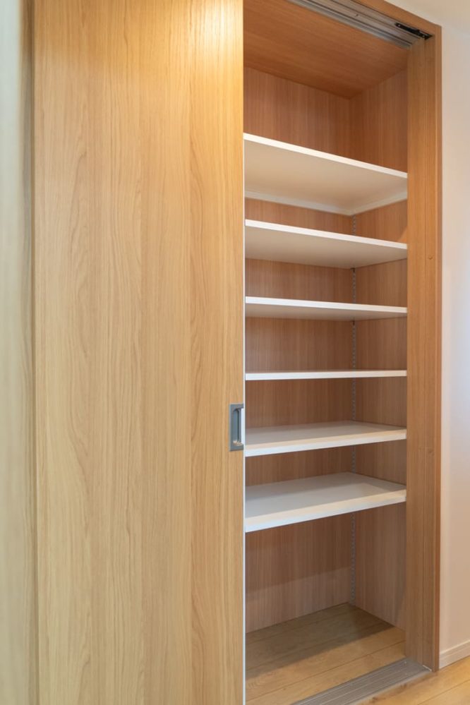 壁一面のクローゼットや各所の造作棚など、豊富な収納計画で、デザイン性だけでなく暮らしやすさも徹底的に追求しました。