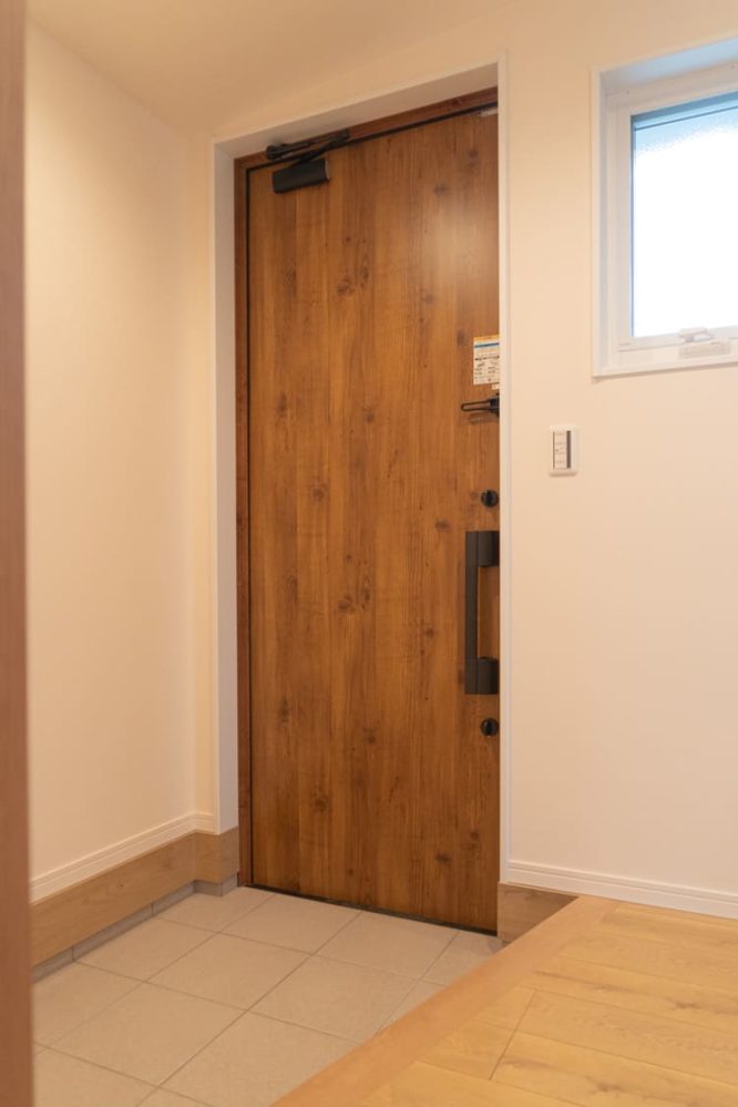 横に設けられた窓からはやわらかな自然光が差し込み、日中の玄関を明るく照らしてくれます。