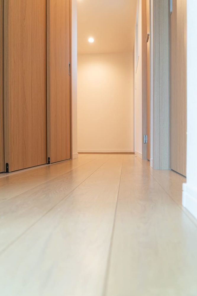 ただの通路だった廊下も、明るいフローリングと温かみのある木製ドアで、家全体に統一感のある洗練された空間になりました。