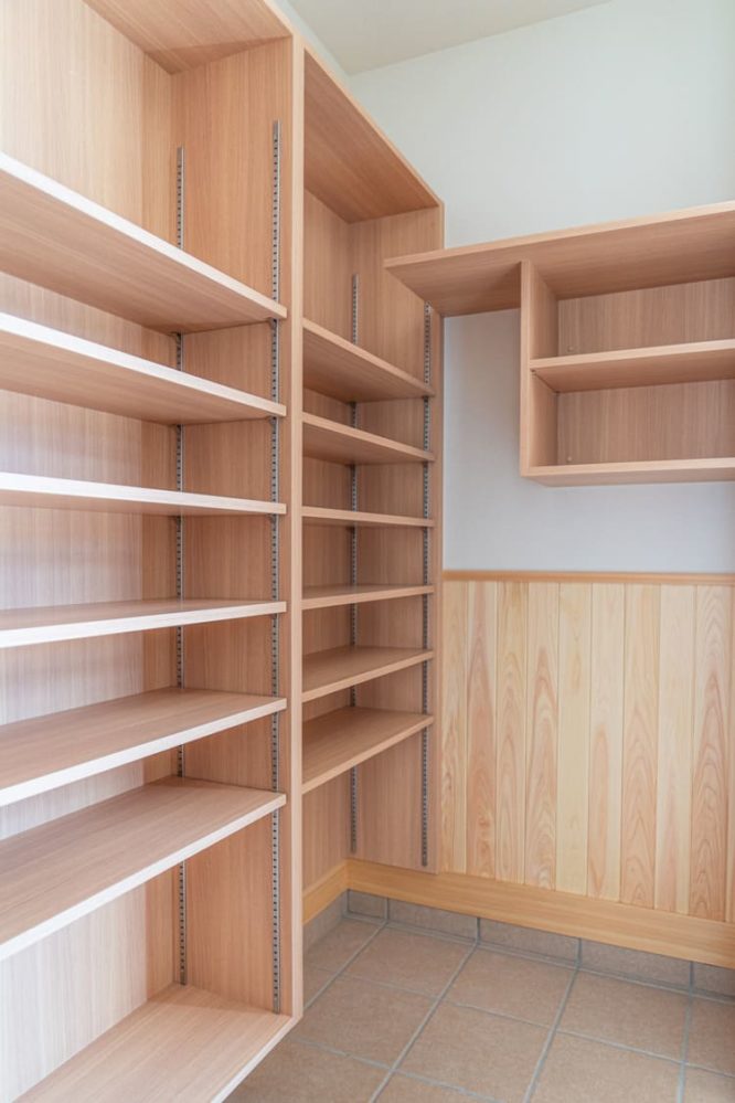 家族みんなの靴がすっきりと収まるだけでなく、季節のものや趣味の道具まで置けるほどの収納力です。